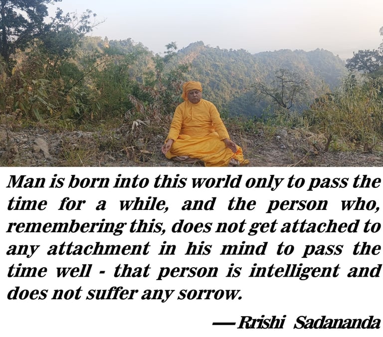 The life of Rishi Sadananda was austere to achieve the real truth of life. From a very young age, his efforts in spiritual progress along with education were visible. From childhood, his disinterest in the material world was visible. Because he always saw that human life is moving forward, that is, towards death, so what is the use of chasing after fame, establishment, position and money in this life. From this, it is very important to know, 'Why did I get this human life, what was my condition before coming into the womb of my mother and what condition will I be in after death or then. Is there something in my real being that existed before coming into the womb of my mother and will continue to exist after death? If I can find the answers to these questions about myself, the mystery of the birth and death of all living beings will be revealed to me." Motivated by this thought and purpose, he first studied all the books related to Sri Ramakrishna Kathamrit, Thakur Sri Ramakrishna Dev, all the books related to Swami Vivekananda, the Sadhaks of India, the Sadhikas of India, the Srimad Bhagavad Gita, the Srimad Bhagavatam, the Vedas and the Upanishads, and all the religious books. After obtaining a bachelor's degree in pure science, while pursuing engineering, he became attracted to Vedic astrology and Tantra sadhana to find a way out of the suffering of humanity. He not only studied almost all the books on Vedic astrology and all the books on Tantra, but also practiced Tantra under Tantrabhairavi, and later became a Vaishnava under the guidance of Madhav Swamiji. Sadhana, then Vaishnava Tantra Sadhana under the discipleship of Vaishnava-Tantra Guru Sri Kujna Bihari Das Goswami and then Vedantic Gyan Sadhana under the instruction of Gyanguru.